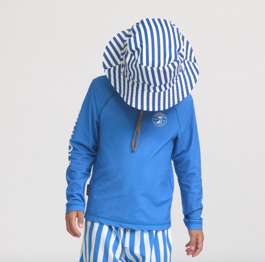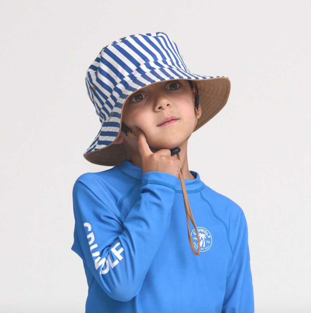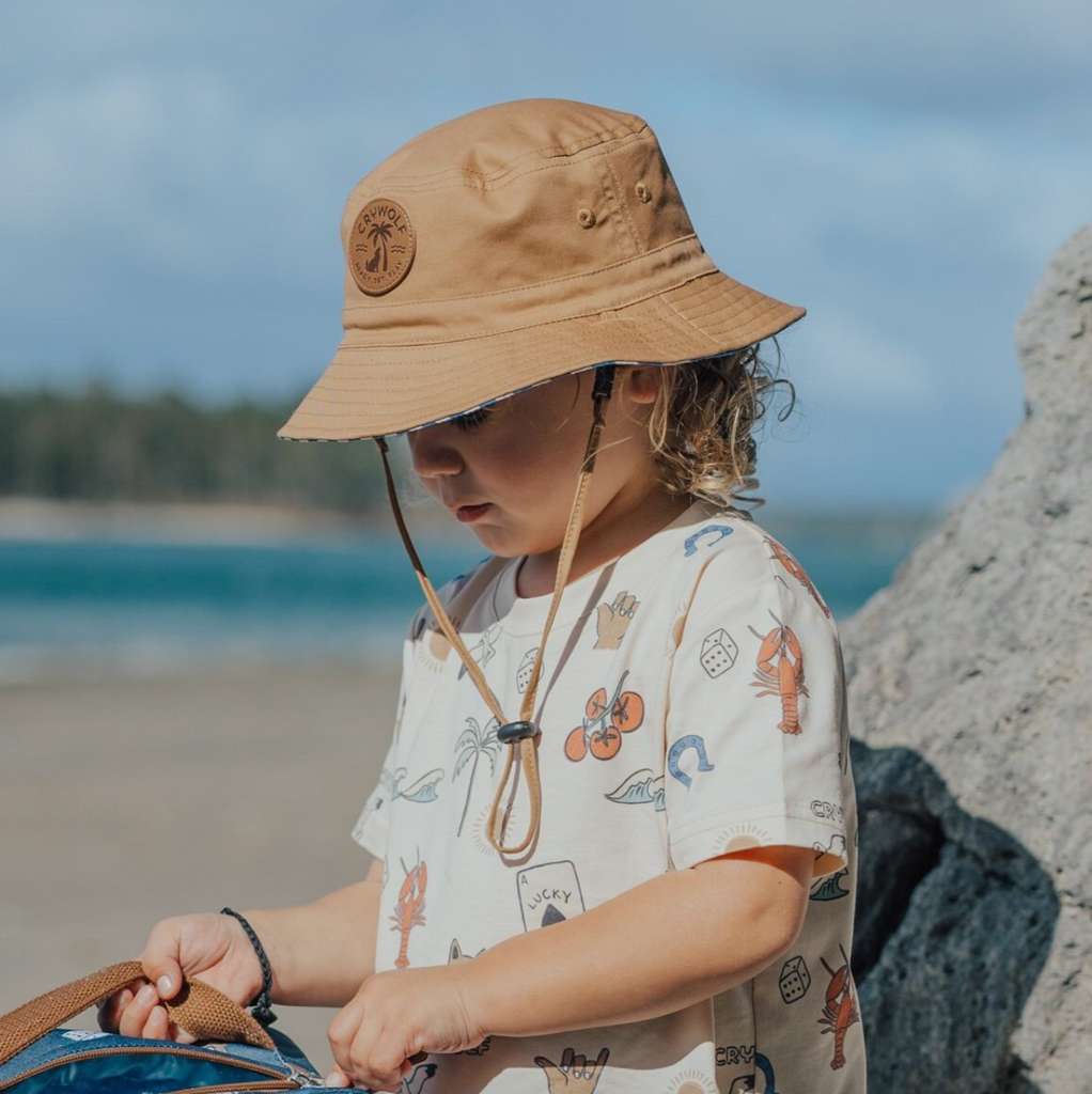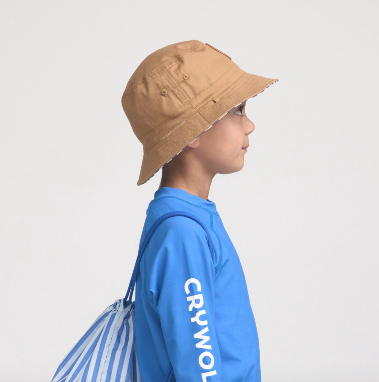 An essential outdoor companion, the Reversible Bucket Hat will keep kids protected from the sun on their everyday adventures. Crywolf Bucket Hats are cleverly designed, featuring a removable chin strap with an adjustable toggle, that easily threads through the brim to allow the hat to be worn both ways. Made from natural cotton twill and available in a range of colours and prints.