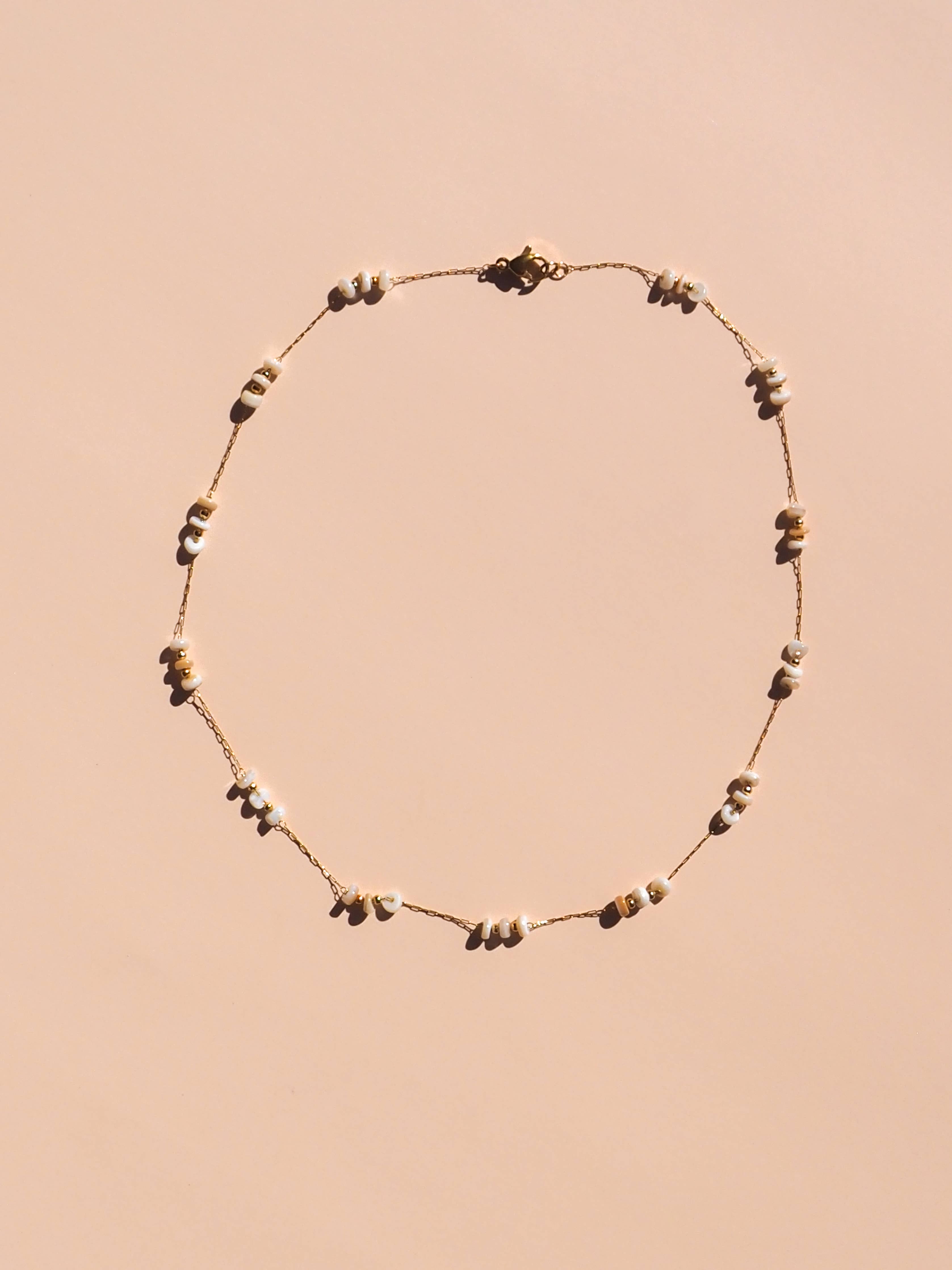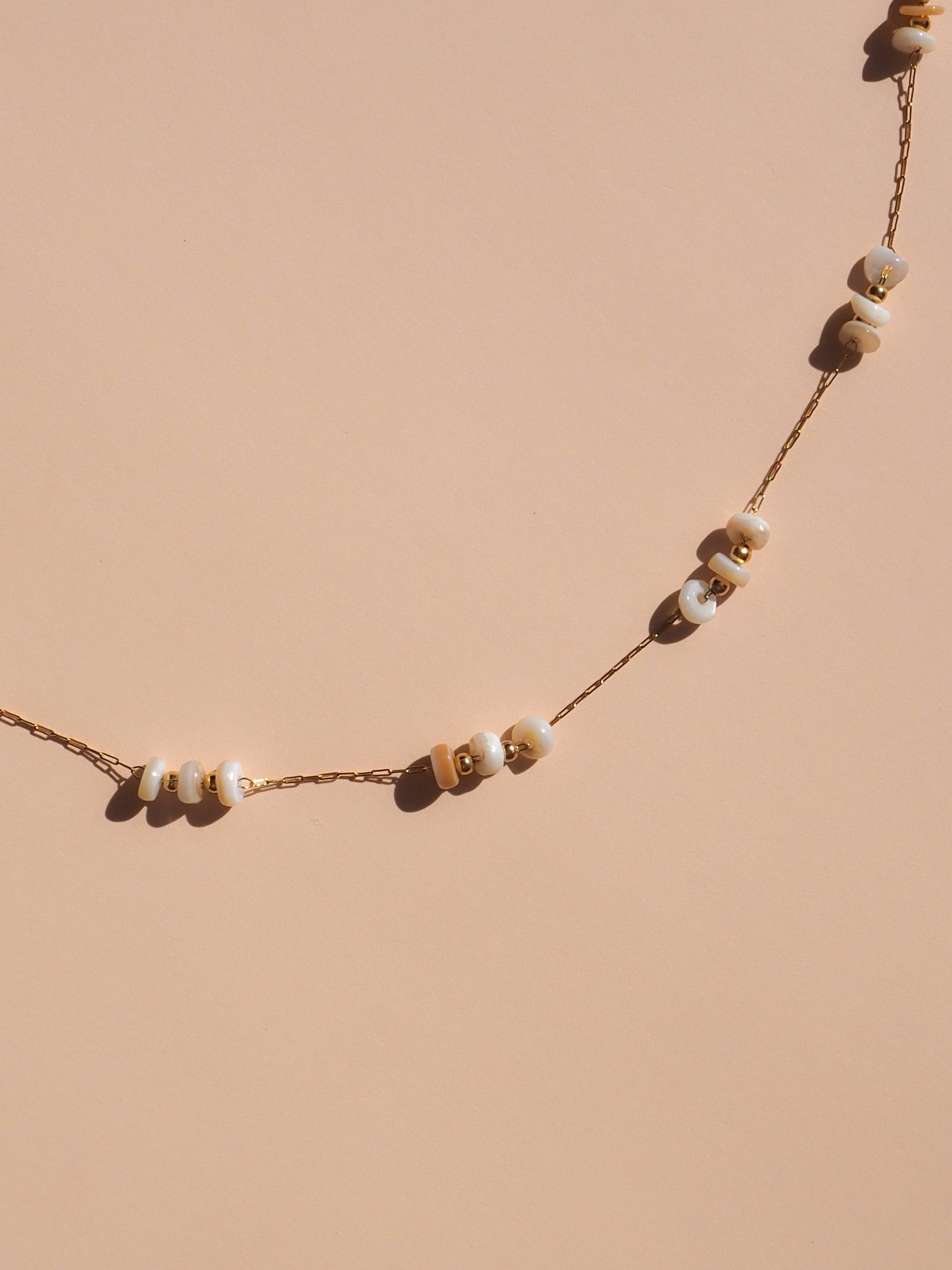 ~ 18K Gold PVD Coating over Stainless Steel ~ Natural Shell adorning the chain ~ Chain length: 16" NON-TARNISHING, SWEATPROOF & SALTWATER SAFE