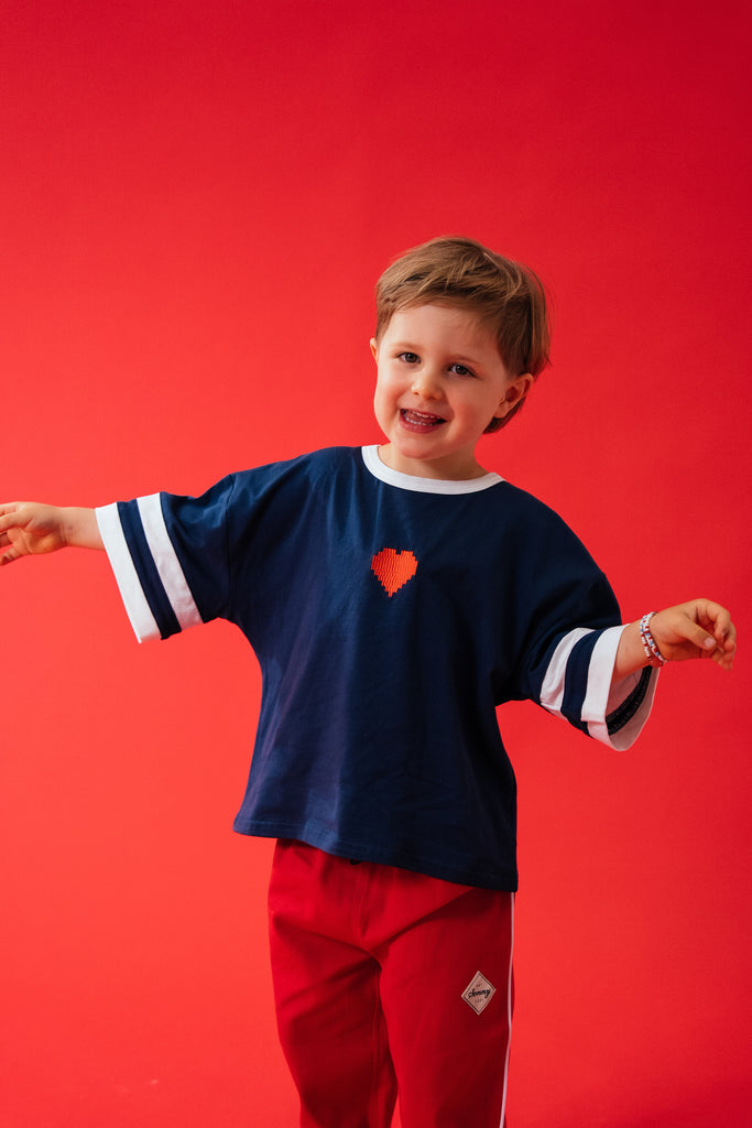 Fabric: 95% Cotton, 5% Spandex Embroidered love heart graphic