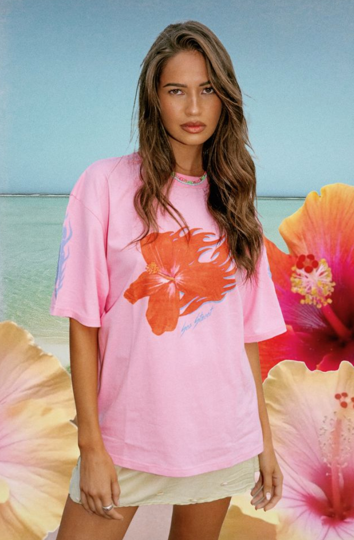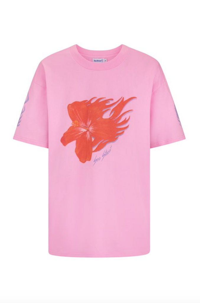 Flaming Hibiscius Relaxed T-Shirt - Pink