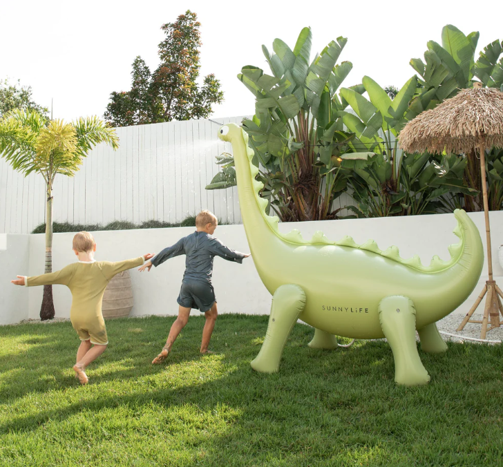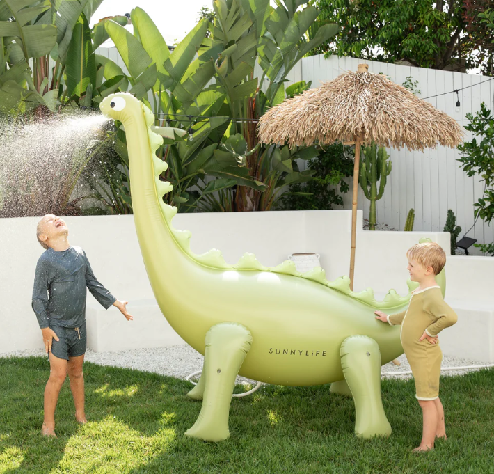 Sprinkle some fun for your little ones. The Into The Wild Dino Giant Sprinkler is designed to refresh hot summer days and provide hours of water filled playtime. Standing tall and proud at over 6 feet, this larger-than-life inflatable sprinkler is sure to be a hit with kids and adults alike. Simply attach to your garden hose and play beneath the sun shower of water spraying from its mouth. Every little one needs a summer companion and this one will definitely turn heads with its 3D lifelike backbone and cool khaki green hue.