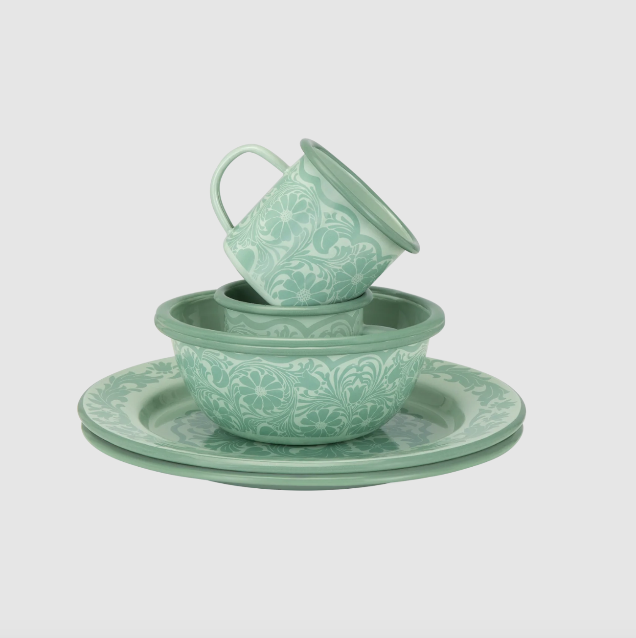 We’re thrilled to introduce a refreshing new colourway: Mint. After the sell-out success of our Toffee enamel collection. Our Mint enamel set is Inspired by nature’s softest greens, this beautifully muted enamelware set is designed for stylish outdoor dining—whether you’re glamping under the stars, having a laid-back beach picnic, or enjoying fireside meals at camp.