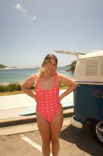 Introducing our newest style: the Breeze One-Piece. designed for ultimate comfort through all your salty adventures. Inspired by breezy summer nights and sun-chasing days, this piece features a low scoop back, a scoop neck with a subtle V detail, and a high-cut hip with cheeky-to-medium coverage.
