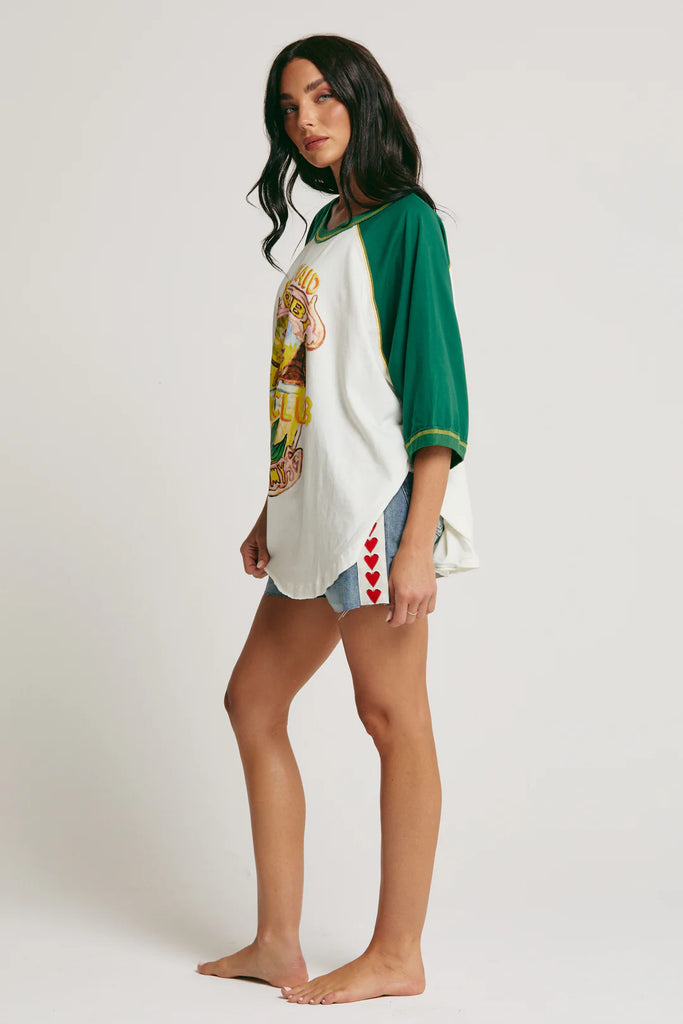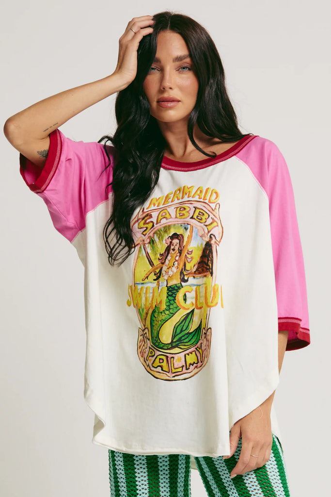Dive into full mermaid fantasy with The Mermaid Swim Club Raglan Tee - a playful, vintage-inspired raglan that brings big beach-club energy wherever you go.
