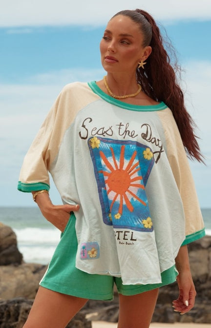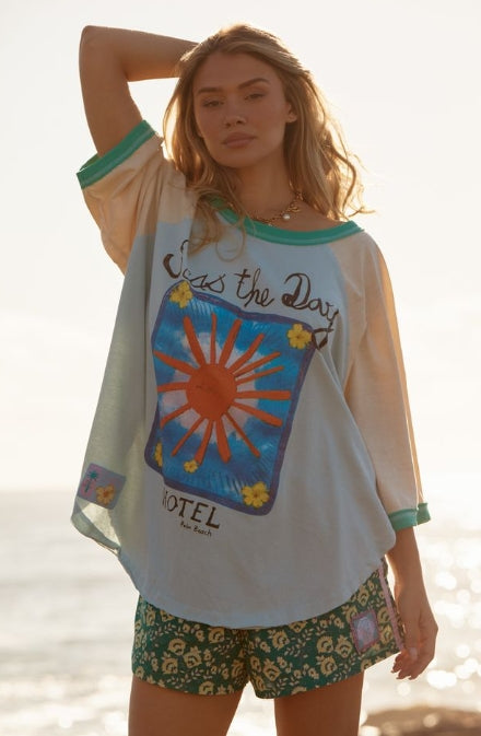 The Seas The Day Raglan Tee is your new go-to for salty hair, sun-kissed skin and not a single plan in sight.