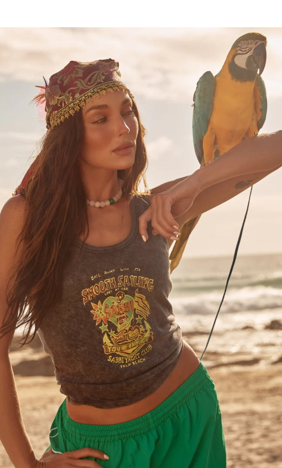 Featuring a classic tank silhouette and a heritage-inspired Sabbi graphic, this piece balances strength and ease. The slightly faded finish gives it that sun-loved look, while the breathable cotton keeps it comfortable through long, warm days.