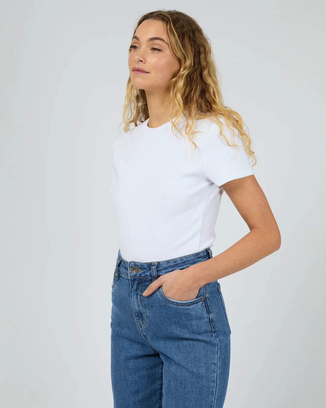 The perfect white tee does exist. Featuring a slim fit, ribbed fabrication and capped sleeves.