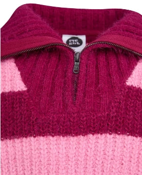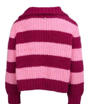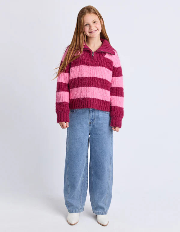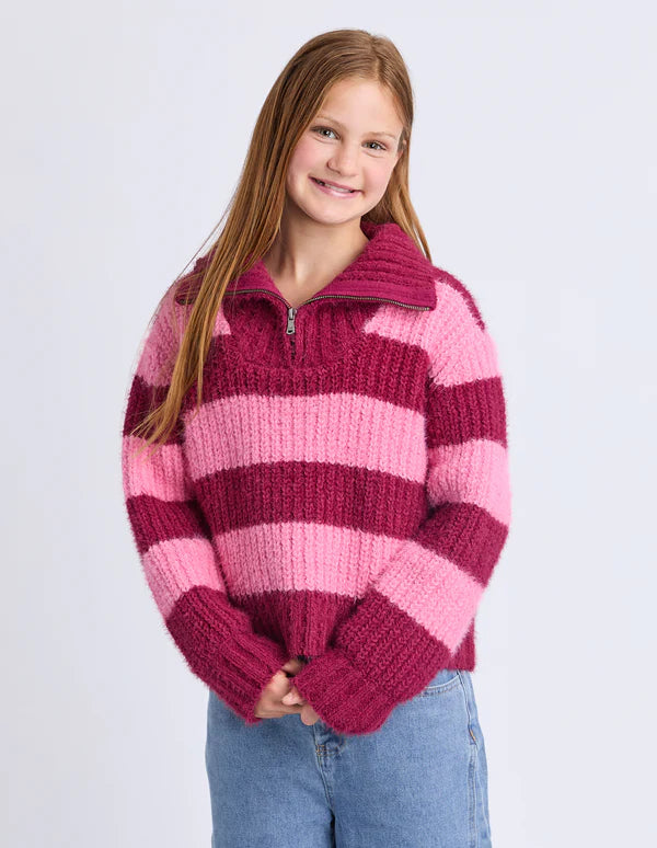 Brighten up the Winter wardrobe with the Daria 1/4 Zip Knit by Eve Girl. Crafted from snuggly fluffy yarn, this knit features a bold stripe design, zip neckline and boxy fit. Perfect for staying warm and looking stylish this season.