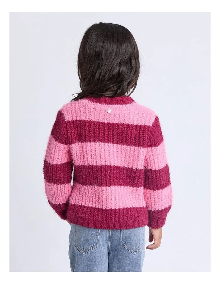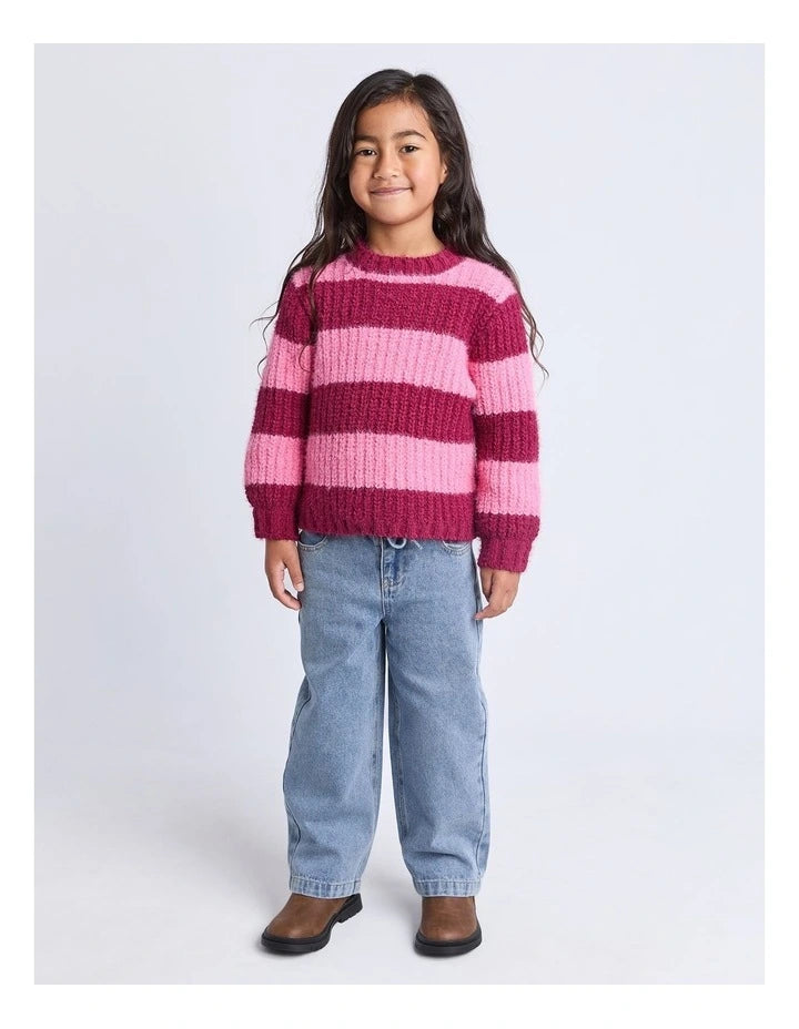 The Daria Knit Jumper by Eve Girl is perfect for all-day comfort and warmth. This jumper is crafted from soft, fluffy yarn, this jumper offers a cozy feel that's perfect for chilly days. The bold stripe design adds a pop of colour and style, paired with a relaxed fit for the perfect knit jumper.