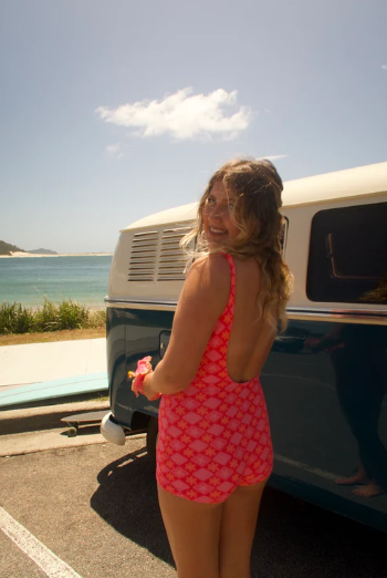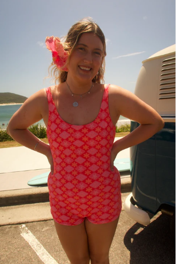 The Delilah Surf Suit is your ultimate companion for ocean adventures, designed for both comfort and performance. This one-piece with boy-leg shorts offers full coverage and freedom of movement, perfect for surfing, swimming, or any water activity. Made from eco-friendly recycled plastics, it’s as sustainable as it is soft, giving you a smooth, comfy fit that moves with you. The low scoop back adds a touch of elegance, while adjustable straps let you tailor the fit for maximum comfort. Removable padding provides customizable support, so you can focus on the waves without a second thought. Whether you're catching the perfect wave or just soaking up the sun, this surf suit has you covered.- Boy-leg shorts for full coverage and comfort