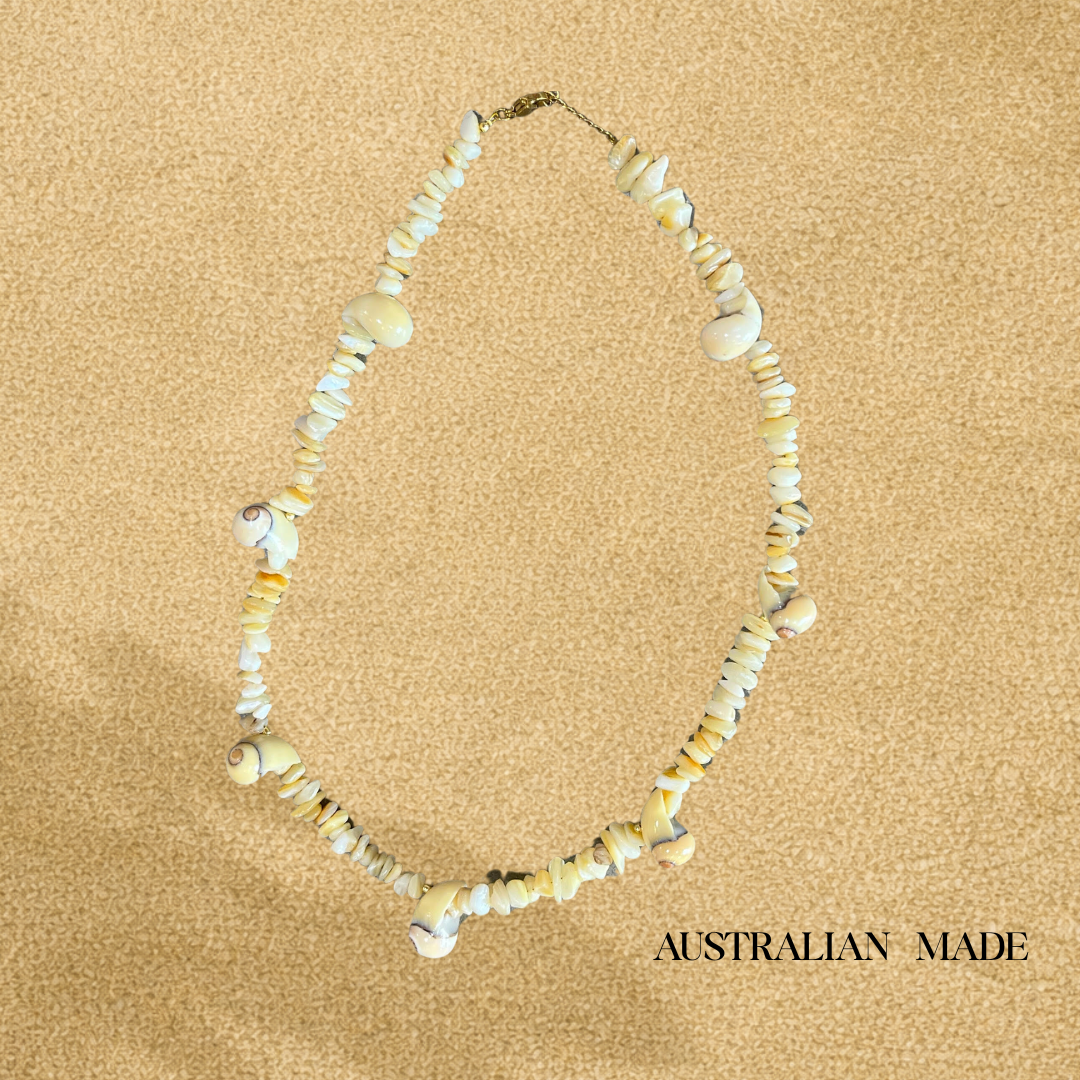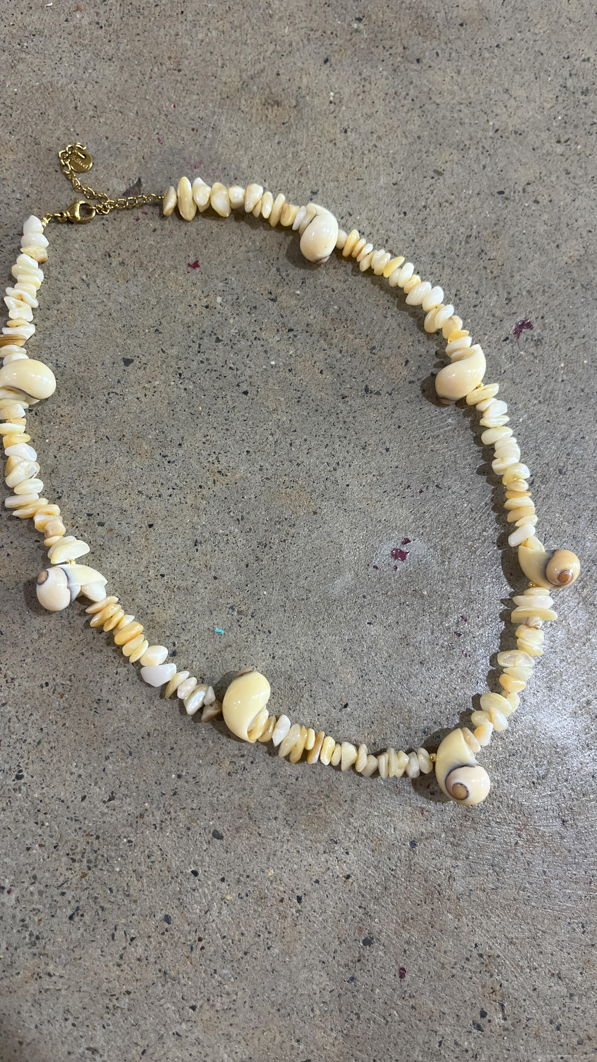 Hand-strung natural shell chips with delicate gold detailing — easy, coastal, and made to layer.