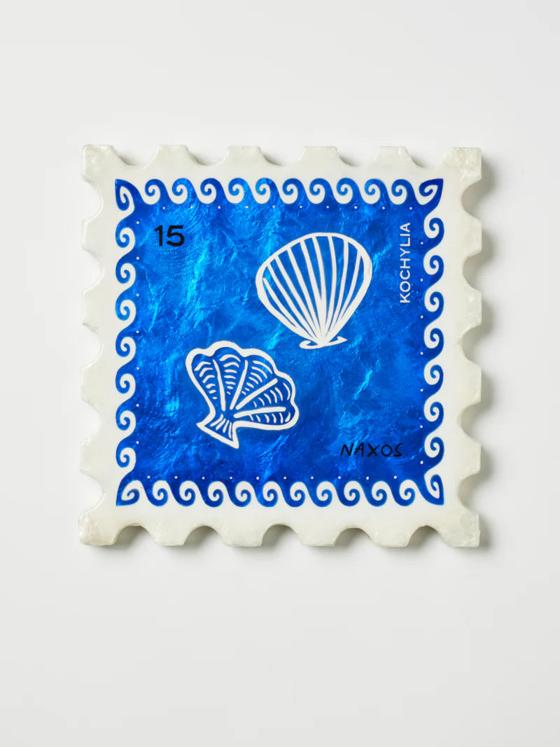 Introducing Sunroom Stamps: Four playful, stamp-shaped wall tiles that bring Mediterranean charm to any space. Crafted from shimmering Capiz shells, each piece features a Greek-inspired motif suns, shells, crabs, or palms in bright primary colours. These eye-catching decorations catch the light beautifully, adding a splash of coastal joy to your walls. Transform your room into a sunny paradise with Sunroom Stamps.