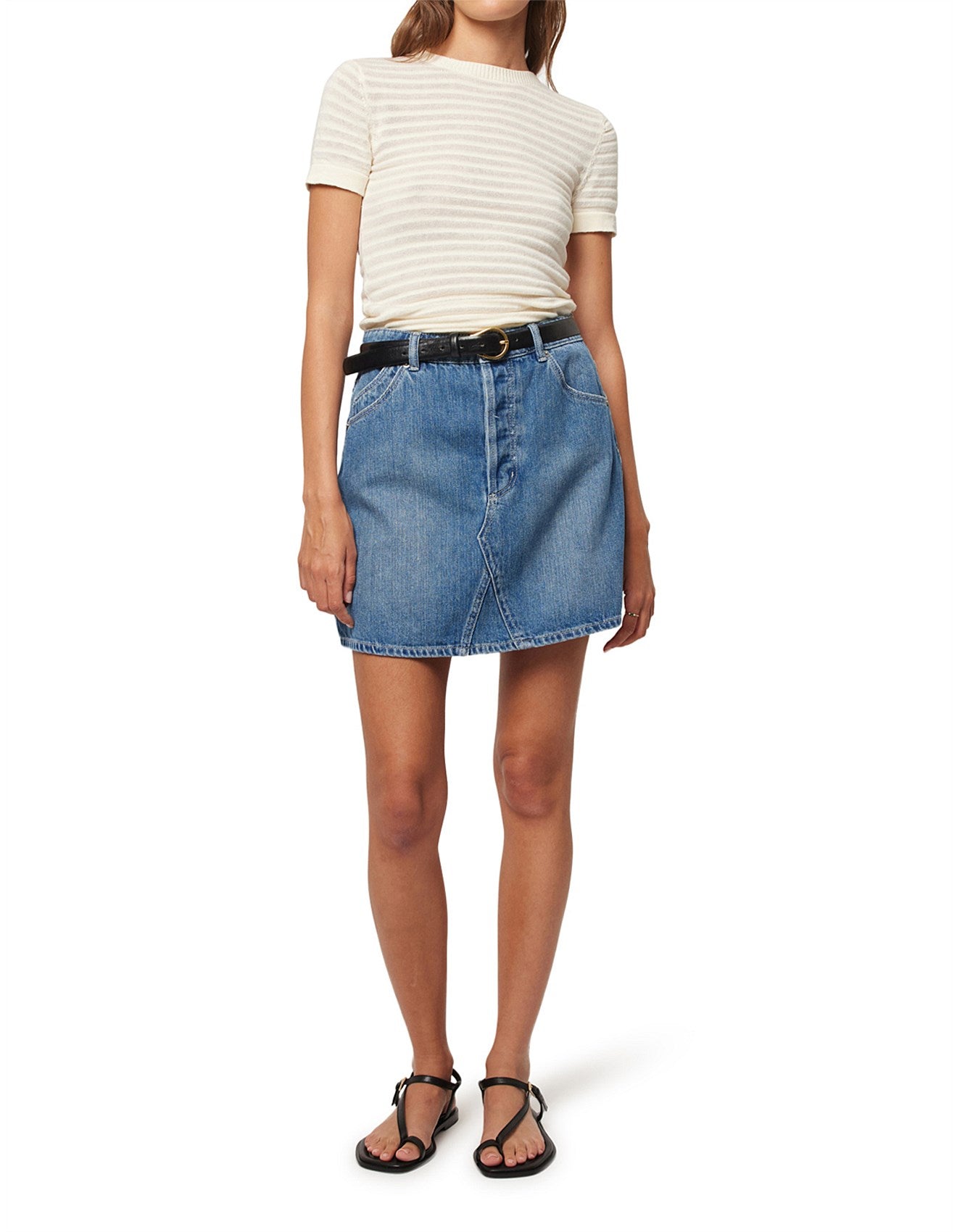 -High rise classic fit mini skirt with Rolla's signature pockets and vintage trims and raw hem