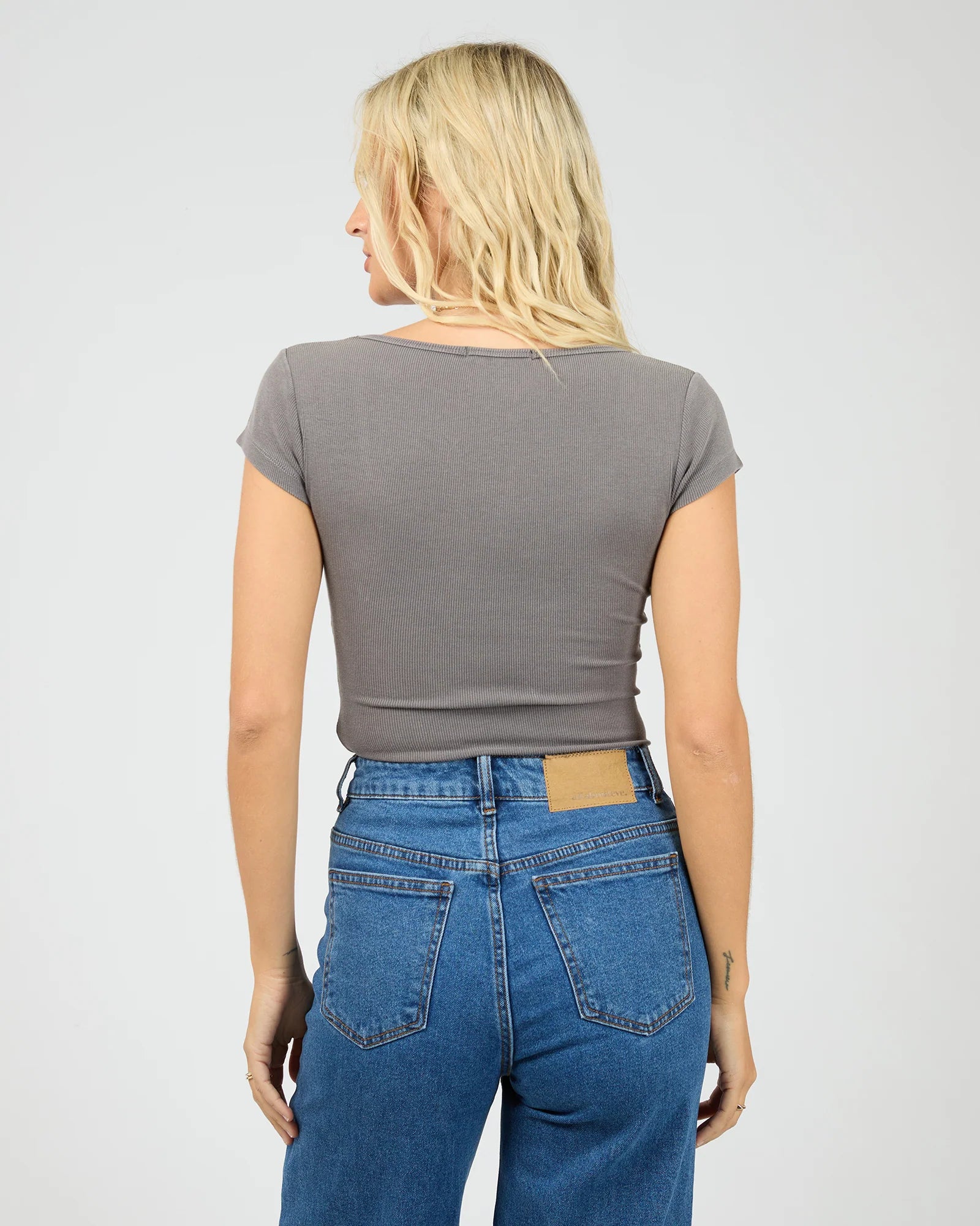Washed Rib Scoop Neck Tee- Charcoal